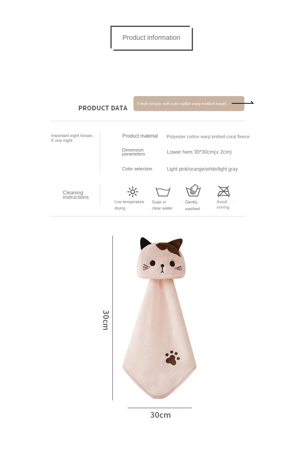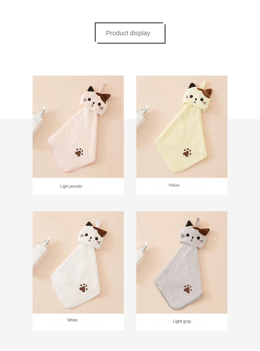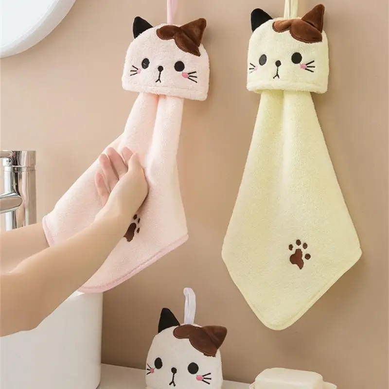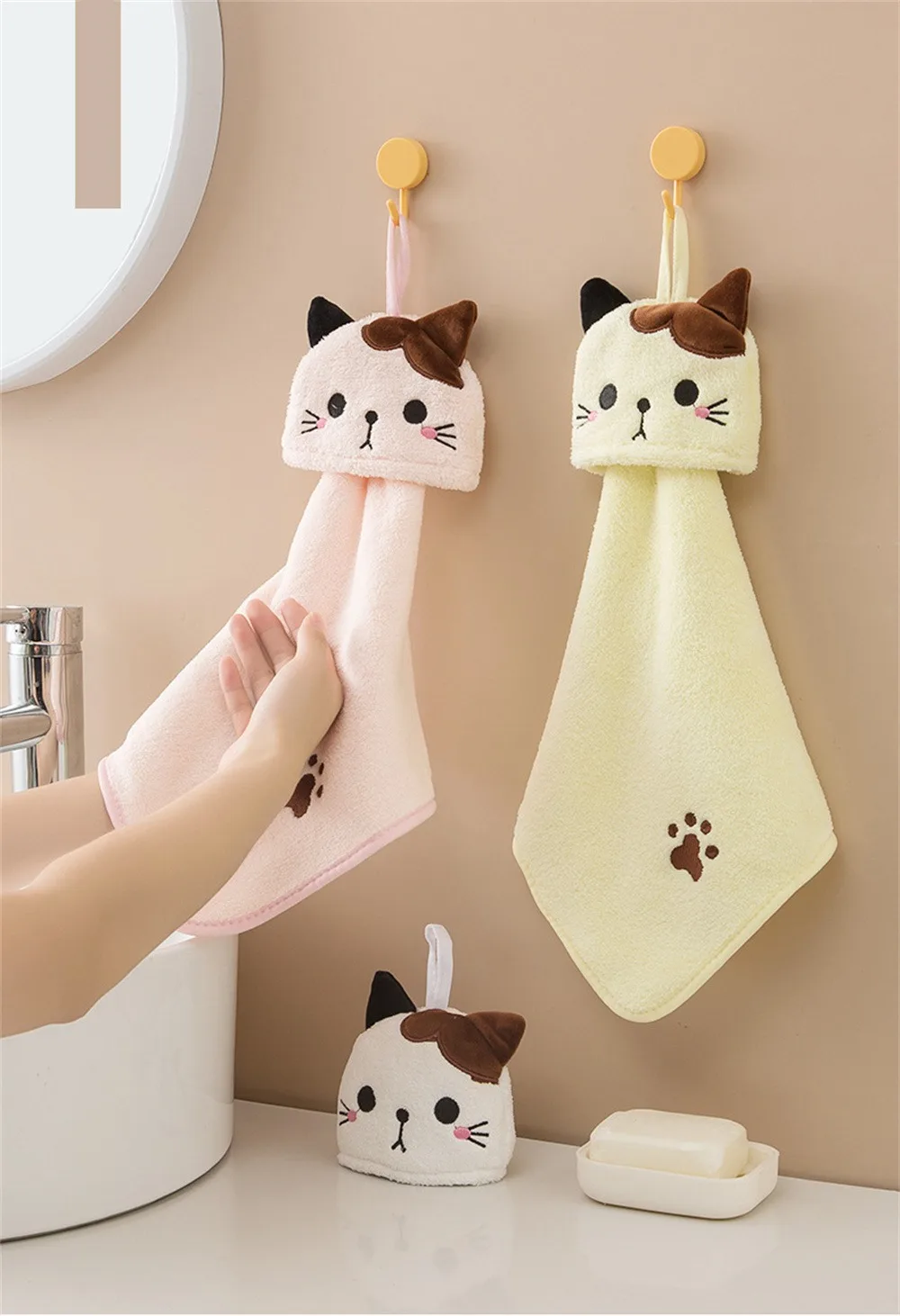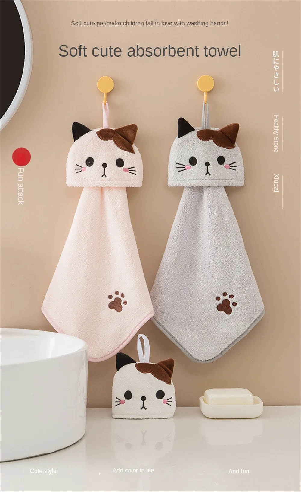 Absorbent Towel Cat Embroidered Super Absorbent Soft Square Home Cleaning Tools Towel Cute Dual-purpose Quick Hand Towel