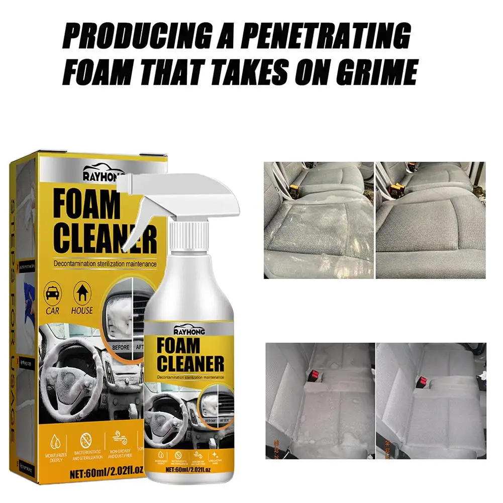 Deep cleaning: Car interior foam cleaner can deeply clean the car interior outword, effectively remove dust, dirt, oil stains and other pollutants, making the car interior look brand new.