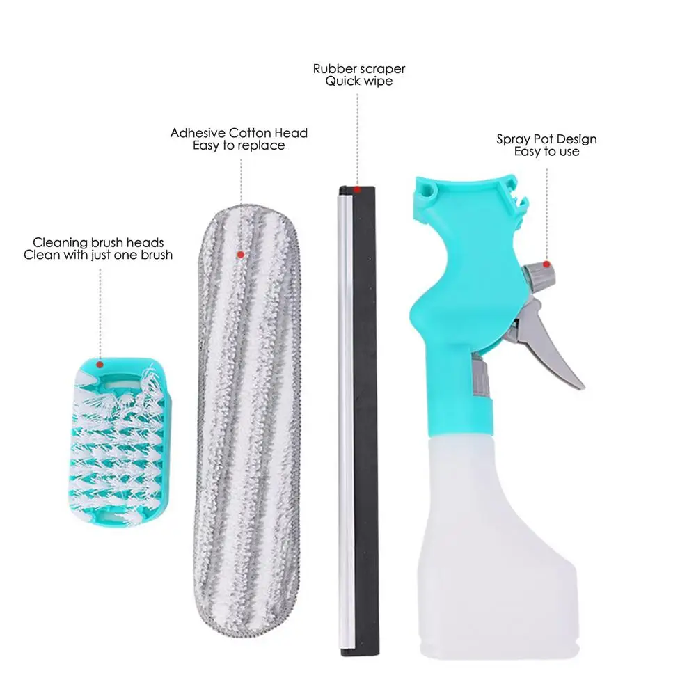 1.4-in-1 Design: Equipped with a rubber scraper for swift moisture removal, a replaceable cotton head, and an extra brush to tackle window grime, this cleaner’s 4-in-1 design integrates a spray bottle, simplifying your car windshield cleaning routine.